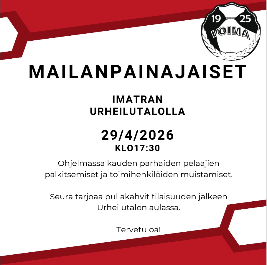 Kutsumme teidät Voimalaiset paikalle perheineen tapahtumaan 29.4.2026 klo 17:30 alkaen Imatran urheilutalolle.
